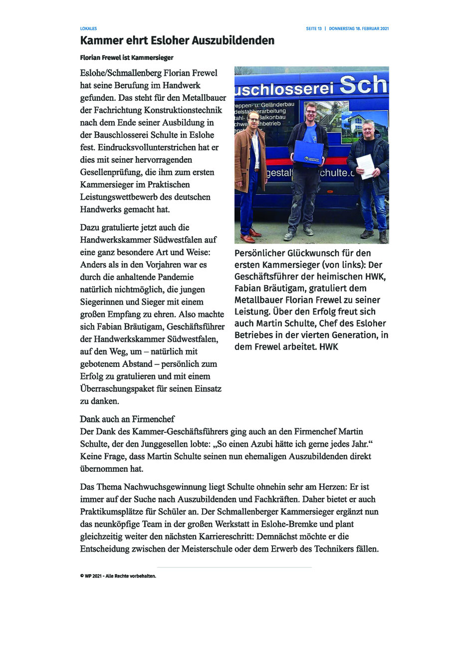 Wir begrüßen Sie auf unserer neuen Homepage der Bauschlosserei Schulte. Hier finden Sie einen ersten Überblick über uns, unsere Leistungen und unsere Arbeit. Gerne stehen wir Ihnen jederzeit